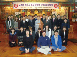 Áö³ 2009³â °³¿î»ç¿Í °í·Á´ëÇб³´Â ½ÅÃà±â¼÷»ç¹®Á¦¸¦ µÎ°í »çÂû¼öÇàȯ°æÈѼÕÀÌ ÀïÁ¡ÀÌ µÇ¾î °¥µîÀ» ÀÏÀ¸Ä×°í ±× °úÁ¤¿¡¼ µÎ ÁÖü°¡ ¹Ì·¡ÀÇ ÀÎÀ縦 À§ÇÑ ÀåÇÐ »ç¾÷À̶ó´Â °øµ¿ÀÇ ¸ñÇ¥¸¦ ÀÌ·ï³»±â·Î ÇÕÀÇÇß´Ù. ±×°ÍÀº °³¿î»ç ÁÖÁö ¹üÇØ ½º´ÔÀÇ Á¦¾ÈÀ¸·Î <±ÝÀüÀû º¸»ó´ë½Å °øµ¿ÀåÇÐȸ ¼³¸³À» À§ÇØ ¸Å³â °³¿î»ç¿¡¼ 1õ¸¸ ¿ø, °í·Á´ë¿¡¼ 4õ¸¸ ¿øÀ» Ã⿬Çϰí Àü±¹ °¢ »çÂû¿¡¼ ÃßõÇÑ °í·Á´ëÀÔÇлý ¹× ÀçÇлýÀ» ´ë»óÀ¸·Î ÀåÇÐȸ¿î¿µÀ§¿øÈ¸¸¦ ÅëÇØ ¸Å³â 108¸íÀ» ¼±¹ß, ÀåÇбݰú ½ÅÃà±â¼÷»ç ÀÔÁÖ±ÇÀ» ÁÖ±â·Î>ÇÑ °ÍÀÌ´Ù. ÀåÇÐÁõ¼ ¼ö¿©½ÄÀÌ ÀÖ±â ÇÑ ½Ã°£ Àü¿¡ ¹üÇØ ½º´ÔÀ» ºËÀÚ Ã»Çß´õ´Ï ½º´Ô²²¼´Â ÈçÄèÈ÷ ÂþÀÚ¸®¸¦ ¸¶·ÃÇØÁ̴ּÙ.
