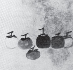 ¸ñ°èÀÇ ±×¸² Áß¿¡¼ ¸¹ÀÌ ¾Ë·ÁÁ® ÀÖÁö¸¸ µµÆÇÀ» ±¸Çϱ⠽±Áö ¾ÊÀº <À°½Ãµµë»柿Óñ>¶ó´Â ±×¸²ÀÌ ÀÖ´Ù. ±×¾ß¸»·Î µþ¶û °¨ ¿©¼¸ °³¸¦ ±×¸° ±×¸²ÀÌ´Ù. Âü ½¬¿î °Í °°Àºµ¥, ÀÌ ¶ÇÇÑ ÇØ¼®ÇϱⰡ ½±Áö ¾Ê¾Ò´Ù. °¨ÀÌ µµ´ëü ¹«¾ùÀ̶õ ¸»ÀÎÁö, °Ô´Ù°¡ ¿©¼¸ °³¶ó´Â ¾Ë´Ù°¡µµ ¸ð¸£°Ú´Â ¼ýÀÚ±îÁö ´õÇÏ¸é ±×³É À̰͵µ Å« Àǹ̰¡ ¾ø´Â ¡®¹¬Èñ¡¯°¡ ¾Æ´Ï¾ú³ª ÇÏ´Â »ý°¢µµ µç´Ù. ±×µµ ±×·² °ÍÀÌ È¸é ¼Ó °¨Àº ¾ÆÁÖ ÀûÀýÇÑ À§Ä¡¿¡ Àß ¹èÄ¡µÇ¾î ÀÖÀ¸¸ç, ä»öÀ» ÇÏÁö ¾ÊÀº ¸ÔÀ¸·Î¸¸ ±×·ÁÁø ±×¸²Àε¥ ¿©¼¸ °³ÀÇ °¨Àº °¢°¢ÀÇ ³ó´ãÀ» ´Þ¸®ÇÏ¸é¼ ¿øÇüÀÇ ¸®µë°¨À» »ì¸®°í ÀÖ´Ù. °¨Àº ÀÏ·Ä·Î ³ª¶õÈ÷ ÀÖÁö¸¸ ±×Áß ¼¼ ¹øÂ° °ÍÀ» ¾à°£ È¸é ¾ÕÂÊÀ¸·Î ¹èÄ¡ÇÏ¿© ³ó´ãÀÌ ´Ù¸¥ °¨µé°ú ¾Õ ÂÊ¿¡ ³ª¿Í ÀÖ´Â ÇÑ °³·Î ÀÌ ±×¸²ÀÇ ¿øÇüÀû °ø°£À» Á¶¼ºÇϰí ÀÖ´Â °ÍÀÌ´Ù. °ú¿¬ ÀÛ°¡´Â ÀÌ ¿©¼¸ °³ÀÇ °¨À» °¡Áö°í ¹«¾ùÀ» À̾߱â ÇÏ°í ½Í¾úÀ»±î.