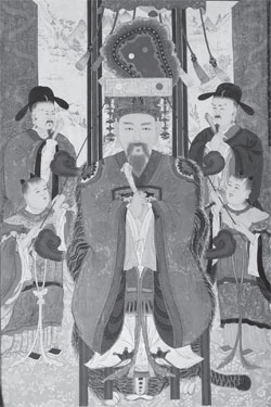 ¼¼Á¶ÀÇ ¿øº» ¾îÁøÀº 1458³â¿¡ °ßº»Ã¤»öÀ¸·Î ±×·ÁÁ³°í Å©±â´Â °¡·Î 86cm ¼¼·Î´Â 136cmÀ¸·Î ÇØÀÎ»ç ¼ºº¸¹Ú¹°°ü¿¡ ÀÖ´Ù. ¼¼Á¶´Â ÀÚ½ÅÀÌ ÀúÁö¸¥ Á˾÷ ¶§¹®¿¡ ºÒ±³¿¡ ¸¹Àº Èñ»ç¸¦ ÇÏ°í ±ÍÀÇÇÑ ¿ÕÀ¸·Î ¾Ë·ÁÁ® ÀÖ´Ù. ÇØÀλ翡¼µµ ´ëÀå°æÀÇ À̾Ȱú ÇÔ²² 50ºÎ¸¦ ÀÎÃâÇϰí, ´ëÀå°æ ÆÇÀüÀ» Áß°ÇÇÏ´Â µî ¼¼Á¶¿Í ÇØÀλç´Â °¢º°ÇÑ °ü°è¿¡ ÀÖ¾ú´Ù. Áï ÇØÀλçÀÇ ÁßÈï¿¡ Å« °ø·Î°¡ ÀÎÁ¤µÇ¾î ÇØÀλ翡 ¼¼Á¶ÀÇ Áø¿µÀÌ º¸°üµÇ¾î ÀÖ´Â °ÍÀÌ´Ù. ¼¼Á¶ÀÇ ¸ð½ÀÀº °ï·æÆ÷¸¦ ÀÔ°í È£¶ûÀÌ °¡Á×À» ¾º¿î ÀÇÀÚ¿¡ ¾É¾Æ ¾ç¼Õ¿¡´Â ȦûîÀ» Áã°í Á¤¸éÀ» ÇâÇϰí ÀÖ´Ù. ¸Ó¸® À§ÂÊ¿¡´Â »ê°³°¡ ¸¶Ä¡ ºÒ±³ Àü°¢ ¾È¿¡ ¼³Ä¡µÇ´Â õ°³ô¸ËÏó·³ Ç¥ÇöµÇ¾î ÀÖÀ¸¸ç µÚ¿¡´Â 5Æø º´Ç³ÀÌ ÀÖ´Ù. ¾çÂÊ¿¡´Â ½Ã½Åã´ãí 2À§°¡ ȦÀ» µé°í ÀÖ°í, ½Ã½Å ¾Æ·¡¿¡´Â 2À§ÀÇ µ¿ÀÚ°¡ ÀÏ¿ù¼±À» µé°í ÀÖ´Ù. ÈçÈ÷ º¼¼ö ÀÖ´Â ¿ÕÀÇ ¾îÁø°ú´Â ´Þ¸® ºÒ±³Àû µµ»óÀ» ±Ù°Å·Î Ç¥ÇöÇϰí ÀÖ´Â °ÍÀÌ Æ¯Â¡ÀÌ´Ù. ¿©±â¼ ȦÀº Á¶¼± ½Ã´ë¿¡ º½½¾ÆÄ¡°¡ ÀÓ±ÝÀ» ¸¸³¯ ¶§ Á¶º¹ðÈÜ׿¡ °®Ãß¾î ¼Õ¿¡ Áã´ø ÆÐ¸¦ ¸»ÇÑ´Ù. ¼¼Á¶°¡ ¼¼Á¶ 3³â(1457)¿¡ ´ëÀå°æ 50ºÎ¸¦ ÀÎÃâÇÏ°Ô µÈ °è±â´Â ±¹Å¹ξÈÀ» ±â¿øÇϰí ÀÚ½ÅÀÇ ¾÷ÀåÀ» ÂüȸÇϱâ À§ÇÏ¿© ½Å¹Ì ½º´Ô°ú Á×Çå ½º´ÔÀ» °¨µ¶À¸·Î ÀÓ¸íÇÏ¿© ÀÎÃâÇÏ¿´´Ù. ÀÌ ¶§ °¢µµ °üÂû»ç¿¡°Ô ¸íÇÏ¿© ÇÑÁö 38¸¸ 9õ¿©Ã¸, º 5õ¼®À» ÇØÀλç·Î º¸³»°Ô Çϰí 2¿ù¿¡ ½ÃÀÛÇÏ¿© 4¿ù¿¡ ÀΰæÀ» ¸¶Ä£ ÈÄ Àü±¹ ¸í»ê´ëÂû¿¡ ³ª´©¾î ºÀ¾ÈÇÏ¿´´Ù.