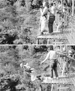 ÀúÈñº¸´Ù ¾Õ¼ µµÂøÇÑ ¹øÁöÁ¡ÇÁ Áö¿øÀÚµéÀÌ Àֱ⵵ ÇßÁö¸¸, ÀÌ ´Ù¸®°¡ ´ÜÁö ¹øÁöÁ¡ÇÁ¸¸À» À§ÇÑ ´Ù¸®°¡ ¾Æ´Ï¶ó È÷¸»¶ó¾ß Çù°îÀÇ ´Ù¸® ³Ê¸Ó¿¡ ÀÚ¸® ÀâÀº ·¹Á¶Æ®¿¡ Áö³»´Â »ç¶÷µéÀÇ ÀÏÁ¤µµ °âÇÏ´Â ÅͶó ÀúÈñ´Â ±×°÷¿¡¼µµ ³× ½Ã°£¿©¸¦ ±â´Ù·Á¾ß¸¸ Çß½À´Ï´Ù. »õº® ¿©¼¸½Ã¿¡ Ãâ¹ßÇØ Á¡½ÉÀ» ¸Ô°í ¾à°£ÀÇ ÈÞ½ÄÀ» ÃëÇÑ µÚ ¹øÁöÁ¡ÇÁ¸¦ ½ÇÁ¦·Î ÇÏ°Ô µÈ ¶§´Â ¿ÀÈÄ µÎ½Ã ¹Ý. ¸Ö¸®¼ ÁöÄѺ¸´ø ´Ù¸® À§¿¡ Á÷Á¢ ¼°Ô µÇ¾úÀ» ¶§, ÀÌÁ¦ °ð ÀÖÀÝ¾Æ À̰÷ÀÌ ³»°¡ ¶Ù¾î³»¸± Àå¼Ò¶ó´Â »ó»óÀ» °ãÃĺ¸´Ï ´Ù¼Ò ±äÀå°¨ÀÌ ¸ô·Áµì´Ï´Ù. Æò»ó½Ã¿¡ Á¾Á¾ Àú´Â °í¼Ò°øÆ÷Áõ µûÀ§´Â ¾ø´Ù°í È£¾ðÀå´ãÀ» ÇßÁö¸¸ 160¹ÌÅÍ ³ôÀÌÀÇ ´Ù¸®¿¡¼ ³»·Á´Ùº¸´Â °ÀÇ ¸ð½À¿¡ ¾ÆµæÇÑ °Å¸®°¨¿¡ ¾à°£ÀÇ Çö±âÁõ¸¶Àú ÀÌ´Â µí Çß½À´Ï´Ù. ¸ö¹«°Ô°¡ °¡º¿î ¼ø¼´ë·Î Çϳª µÑ ¾î¶² ½ÄÀ¸·Îµç Çã°øÀ» ÇâÇØ ¶Ù¾îµé°í Á¦°¡ ¶Û Â÷·Ê°¡ ¿À´Ï µÇ·Á Â÷ºÐÇÑ °¨ÀÌ µé¾ú½À´Ï´Ù. Á¡ÇÁ Àü ÀÎÅͺ並 ÇÒ ¶§¿¡µµ º°´Ù¸¥ ´À³¦ ¾øÀÌ µû¶æÇÑ º½±â¿îÀ» ´À²¼´ø µí ÇÕ´Ï´Ù.